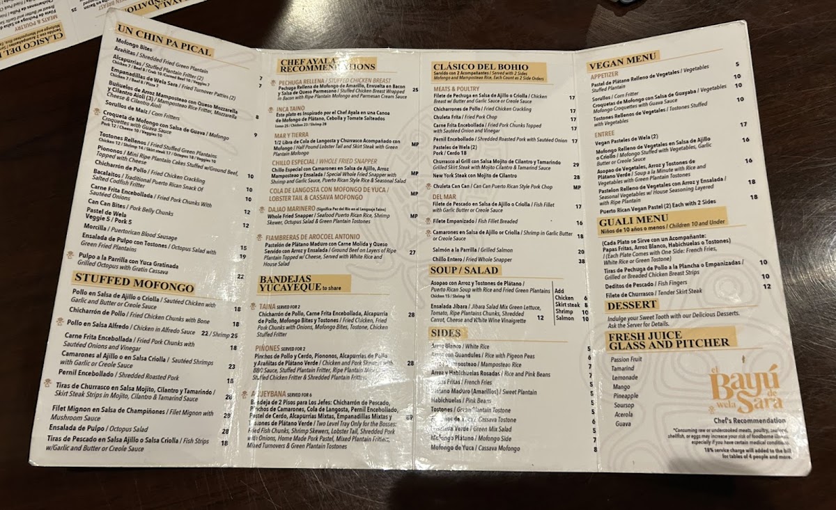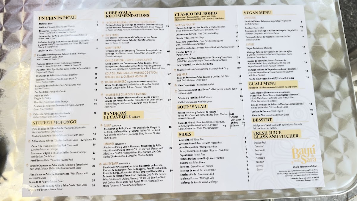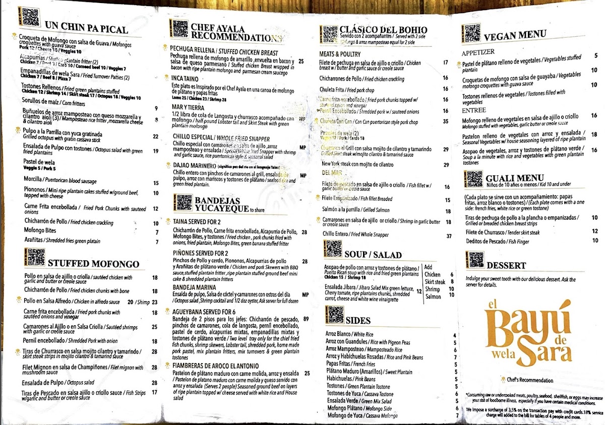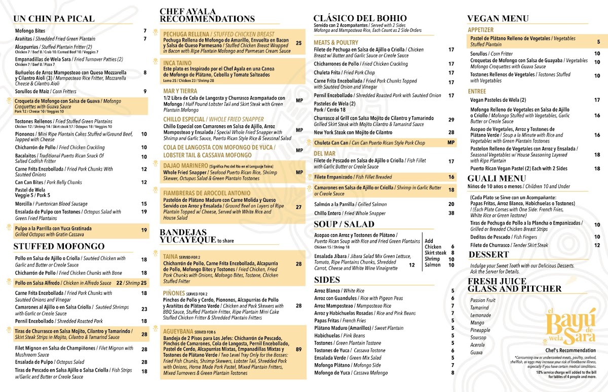 Located in the heart of Hollywood, Florida, El Bayu De Wela Sara Menu offers a delightful blend of flavors that capture the essence of traditional Latin cuisine with a unique twist. Whether you're craving a savory stew, a perfectly grilled dish, or a fresh salad, there's something for every palate. Each dish is carefully prepared with the finest ingredients, ensuring every bite is bursting with flavor. From hearty mains to zesty appetizers, the menu provides an inviting array of options, perfect for a casual meal or a gathering with friends. Come and explore a culinary experience that combines warmth, comfort, and the rich flavors of Latin America, all served with a touch of local charm.