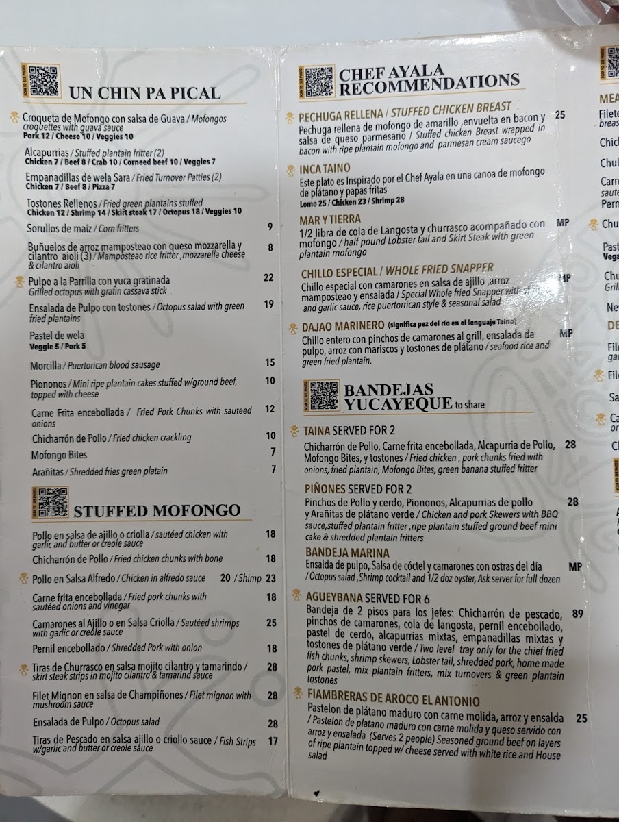 Este plato es Inspirado por el Chef Ayala en una Canoa de Mofongo de Plátano, Cebolla y Tomate Salteados Lomo 25/Chicken 23/Shrimp 28